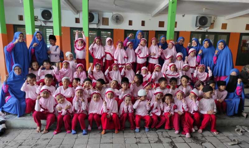 Sejak dini, anak dibimbing untuk sopan santun, berbagi, dan terbiasa berbuat kebaikan dalam keseharian.